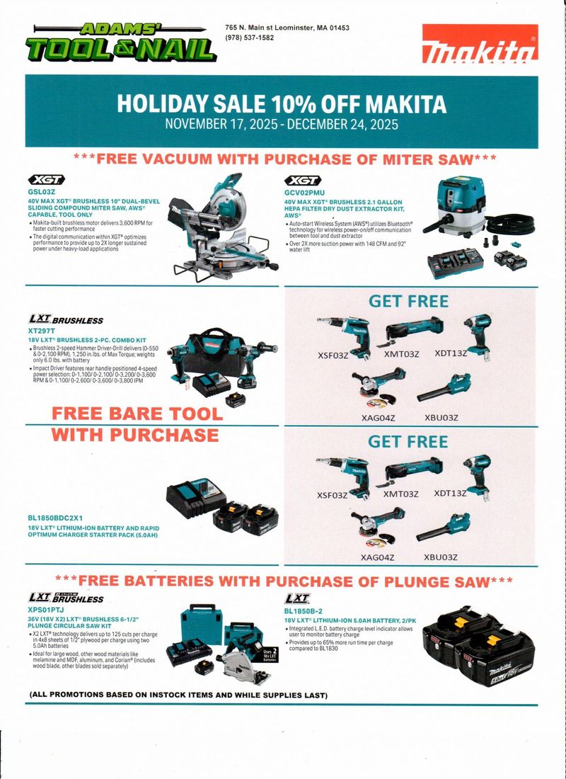 Adams’ Tool & Nail has what you need to get the job done correctly whether you are a contractor or a homeowner. We have a wide variety of high quality products ranging from nail guns to power tools, to hardwood flooring and supplies. No job is too small or too big for Adams’ Tool & Nail.